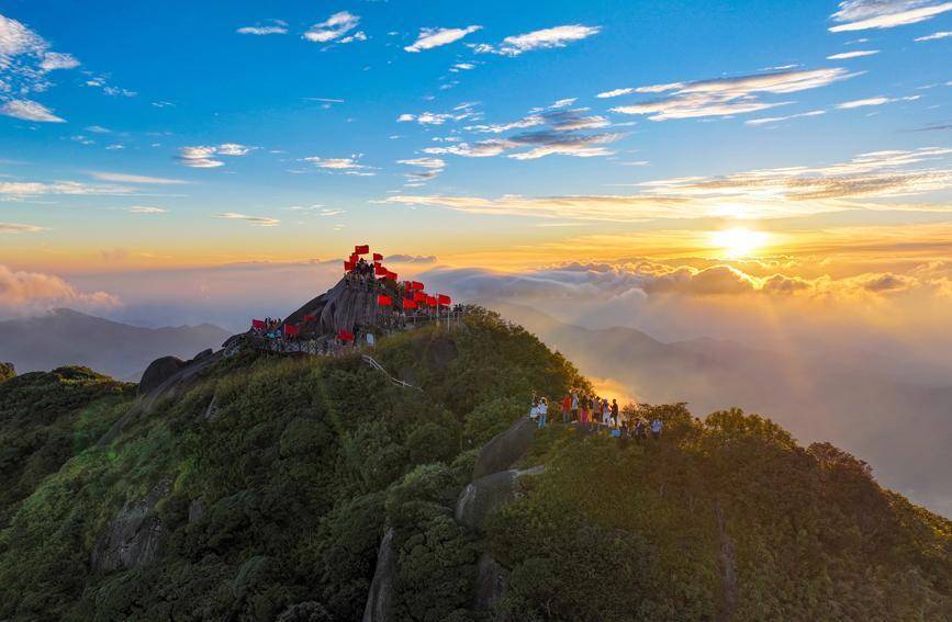 10月1日,游客选择登顶猫儿山迎接日出,饱览壮丽的大好河山。广旅桂林投资公司供图从桂北民族风情到南疆山海边关,从猫儿山“华南之巅”迎接曙光到广旅·南宁之夜畅玩中秋,区内外游客在广旅集团多元化的文旅业态中感受“中国红”、共赏“团圆月”,收获了一个愉悦且难忘的国庆中秋假期。